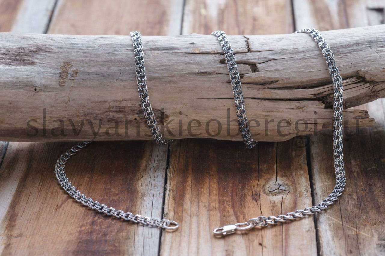 Серебро 925. Вес около 35-40 гр. Звено 4 мм, диагональ 6 мм. (Коловрат, Молвинец, Алатырь).