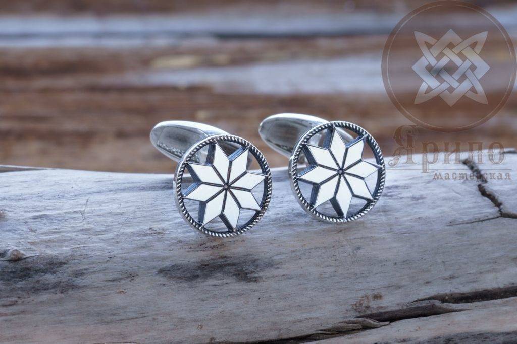 Стильные запонки из серебра подчеркнут индивидуальность мужского и женского образа, украсят деловой костюм для официальных встреч или дополнят вечерний наряд для торжественных мероприятий. Эстетическое совершенство изделия является не единственным достоинством ювелирного украшения. На наружной поверхности запонок изображен один из древнейших славянских символов – Алатырь, который наделен уникальными магическими свойствами. Наши предки использовали данный обережный знак, чтобы отразить негативную энергию, направленную на разрушение душевной сущности человека, а также оградить себя от различных хворей и недомоганий.